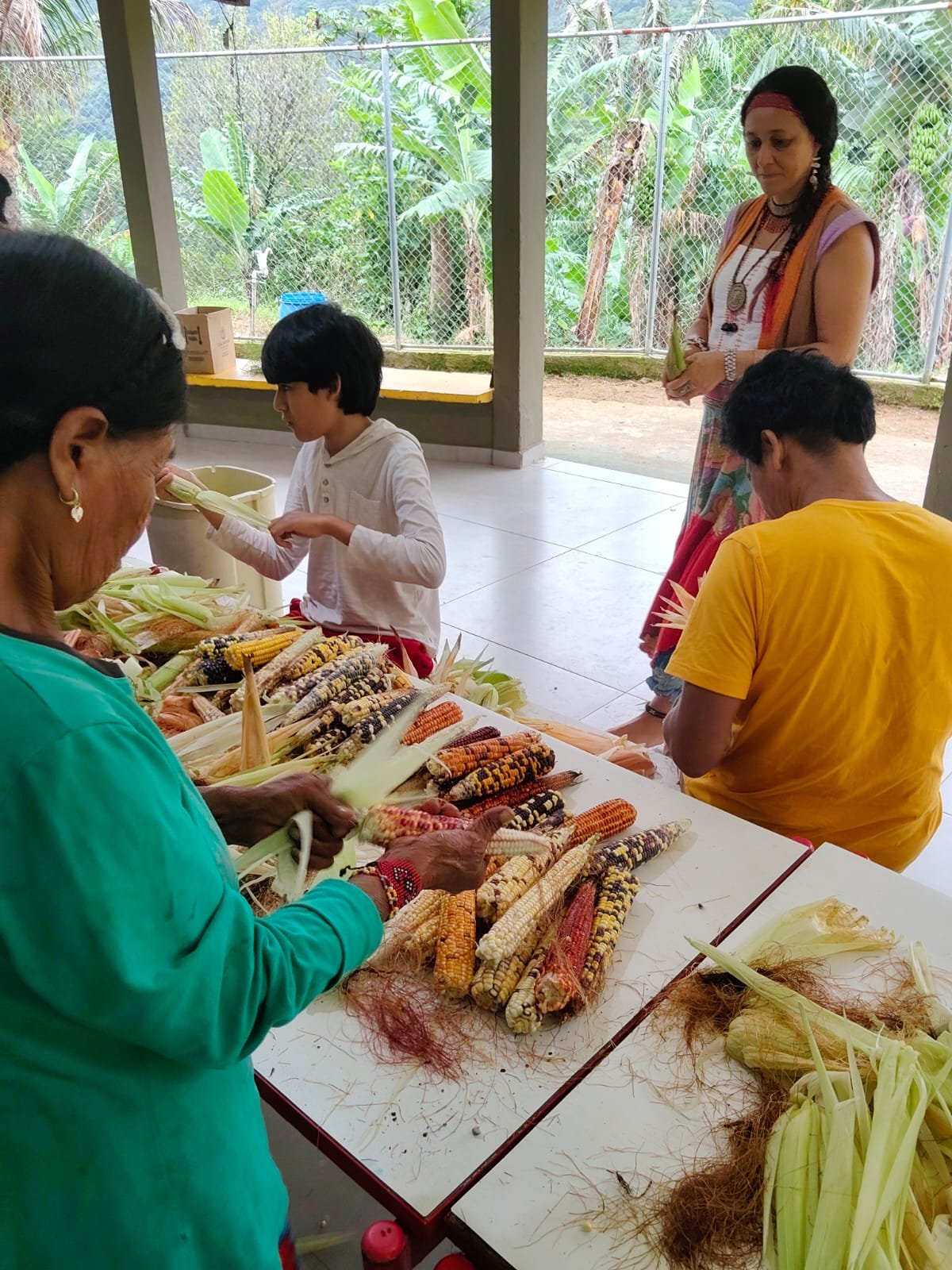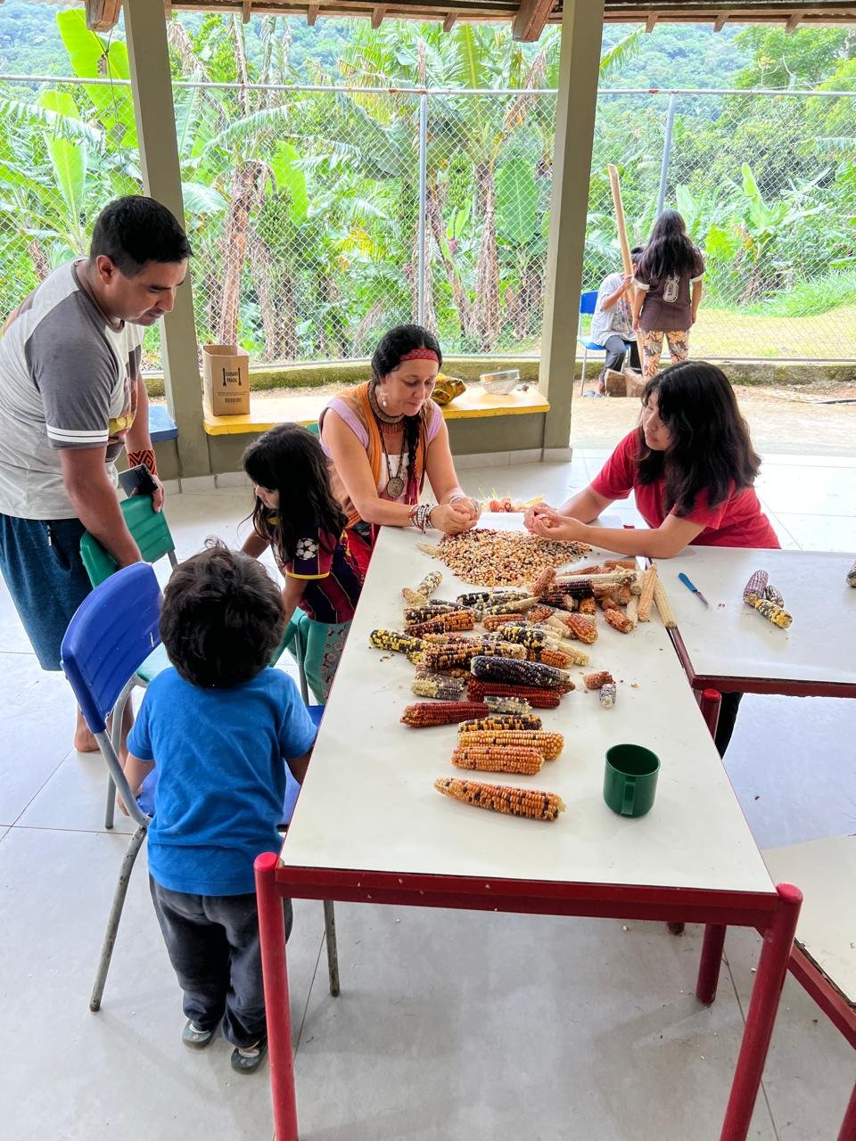 No início desse ano, fui convidada com minha família para participar do Avaxi Nhemongarai, na tekoa Arandu, em Itariri, pelo xeramoi Tupã Dario. Foi um encontro muito especial, pois estava com muita vontade de encontrar esse ser colorido e sagrado, o milho verdadeiro Guarani.
