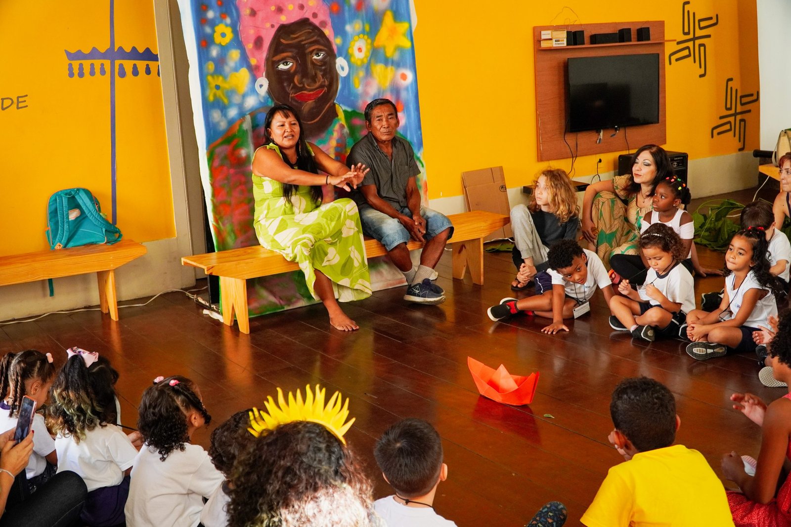 Você não vê na academia toda essa sabedoria que nós temos nesse grupo. Com essa leveza, essa fortaleza mesmo da produção desse percurso da oralidade, da escrita e como ela vai ultrapassando os limites dessa produção, desse pensamento, desse diálogo que nós temos. A gente já se torna segunda porta voz, porque os primeiros são os nossos pais e é uma geração que vem do bisavô, do avô, do tataravô, do Ñapirikoli… E hoje a gente está conseguindo ver as produções dessas falas coletivas, essa potência toda de explicar a existência do mundo, da humanidade, que para tudo há uma explicação. E como é linda essa conexão dessas falas por esse grupo, de sonhar mais com cores, de sonhar mais com músicas, de sonhar mais… Dessa liberdade de se permitir viajar nessas narrativas.