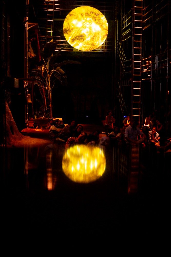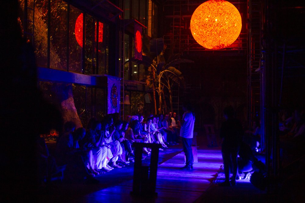 No Selvagem, também uma esfera à sua maneira – esfera de aprendizagens, percursos e práticas –, cultivamos conexões entre diferentes saberes, integrando as diferenças em diversidade e movimento. Em nosso encontro no Teatro Oficina, entendemos que as vozes que narrariam nessa noite seriam nossos planetas: cada um com sua própria energia, mas em alinhamento com o Sol sempre presente, como notas em uma escala. O Sol estabeleceu o tom da nossa conversa e do nosso ano, seguindo conosco desde a exposição Viva Viva Escola Viva, no âmbito da qual nasceu o ciclo SOL, passando por narradores indígenas, pesquisadores, cientistas, educadores e chegando ao solo do teatro para, mais uma vez, ser sempre outro, enquanto não deixa de brilhar, irradiar, existir em luz. Toda vida é um mundo. O Sol também se movimenta no cosmos.