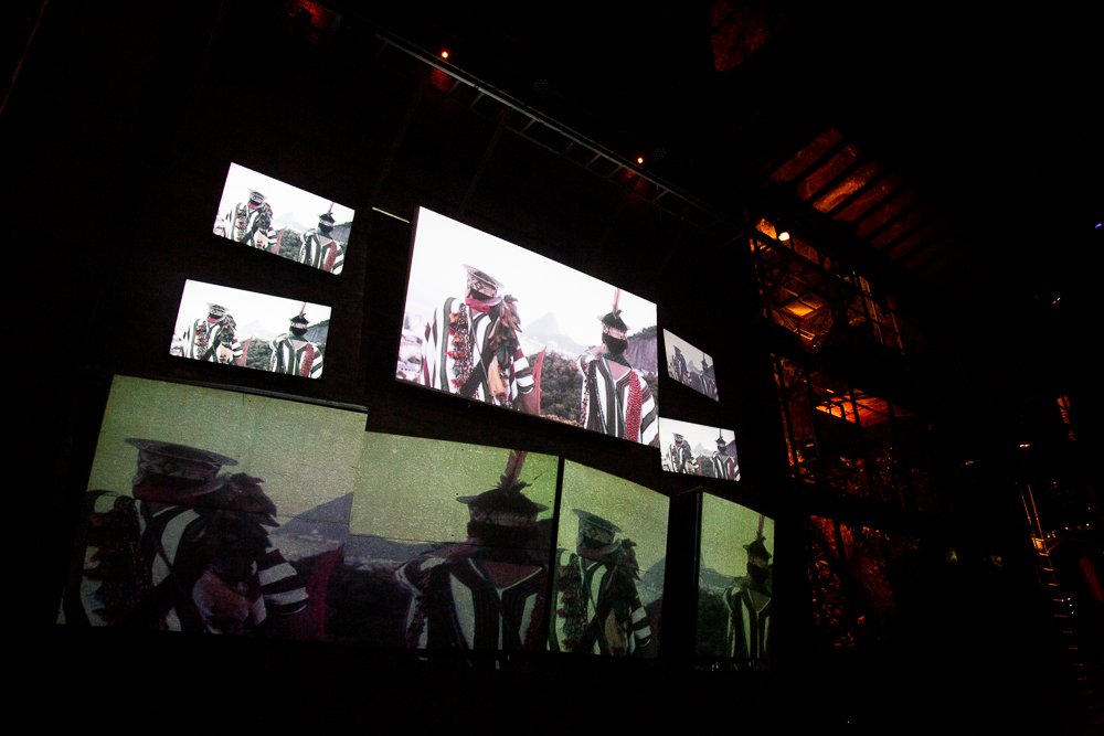 SOL E SOLO começou com Carlos Papá, que trouxe cantos e narrativas Guarani a partir do escuro. Cristine Takuá abriu o espaço com defumação e fez coro ao canto entoado por Papá. Como surgiu a primeira luz, as primeiras formas? Com Papá, nosso encontro nasceu, assim como o próprio Sol, da escuridão.