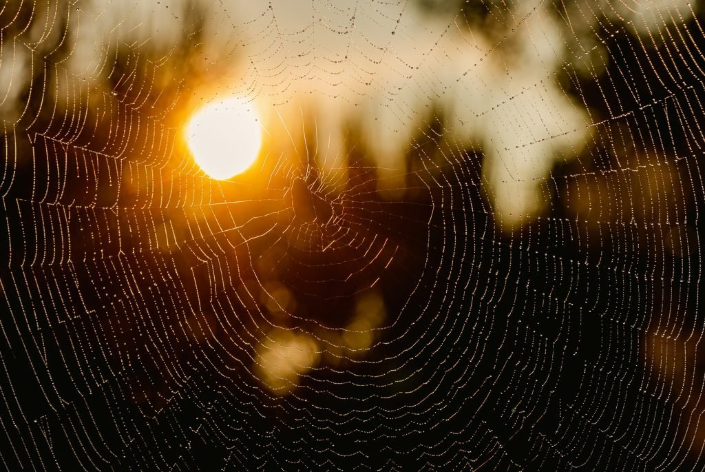 A teia reflete o Sol.