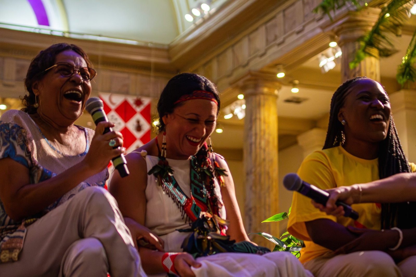 Aos poucos, nossa roda de conversa se transformou em uma roda de ciranda, com todo o público em pé, atento e presente. Entre cantos e giras, Leda trouxe a importância da voz, da memória e da troca de saberes, ressaltando que os conhecimentos são incompletos e imperfeitos, e se beneficiam uns dos outros em vez de se excluírem mutuamente.