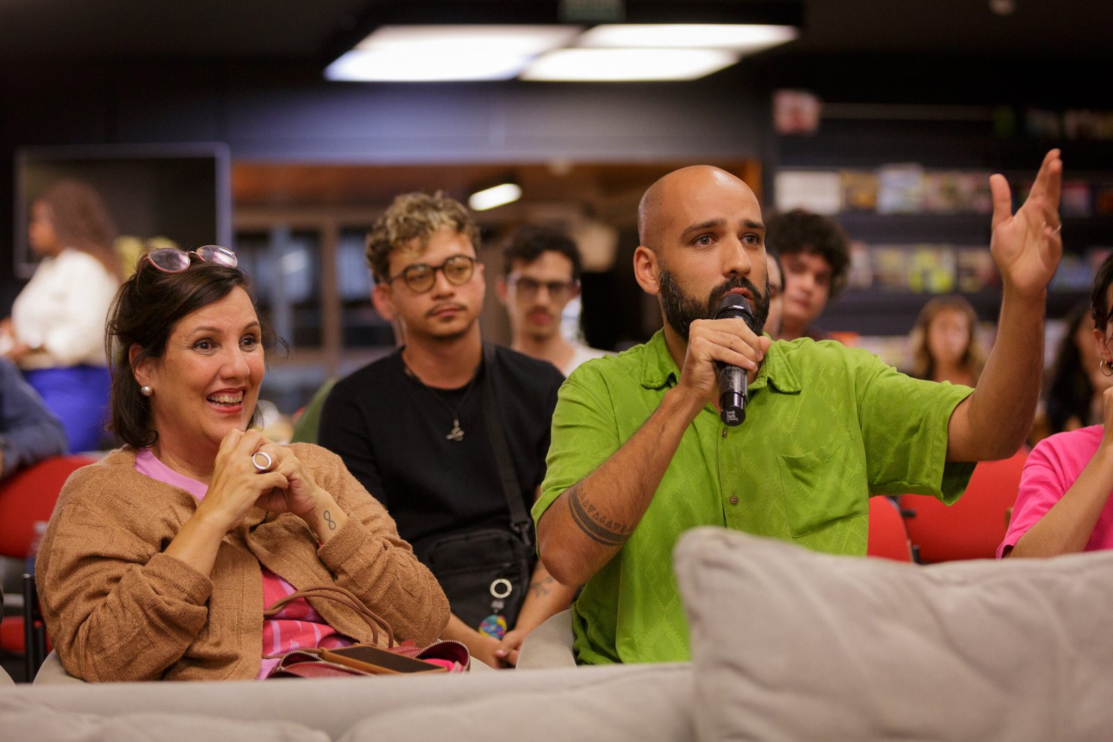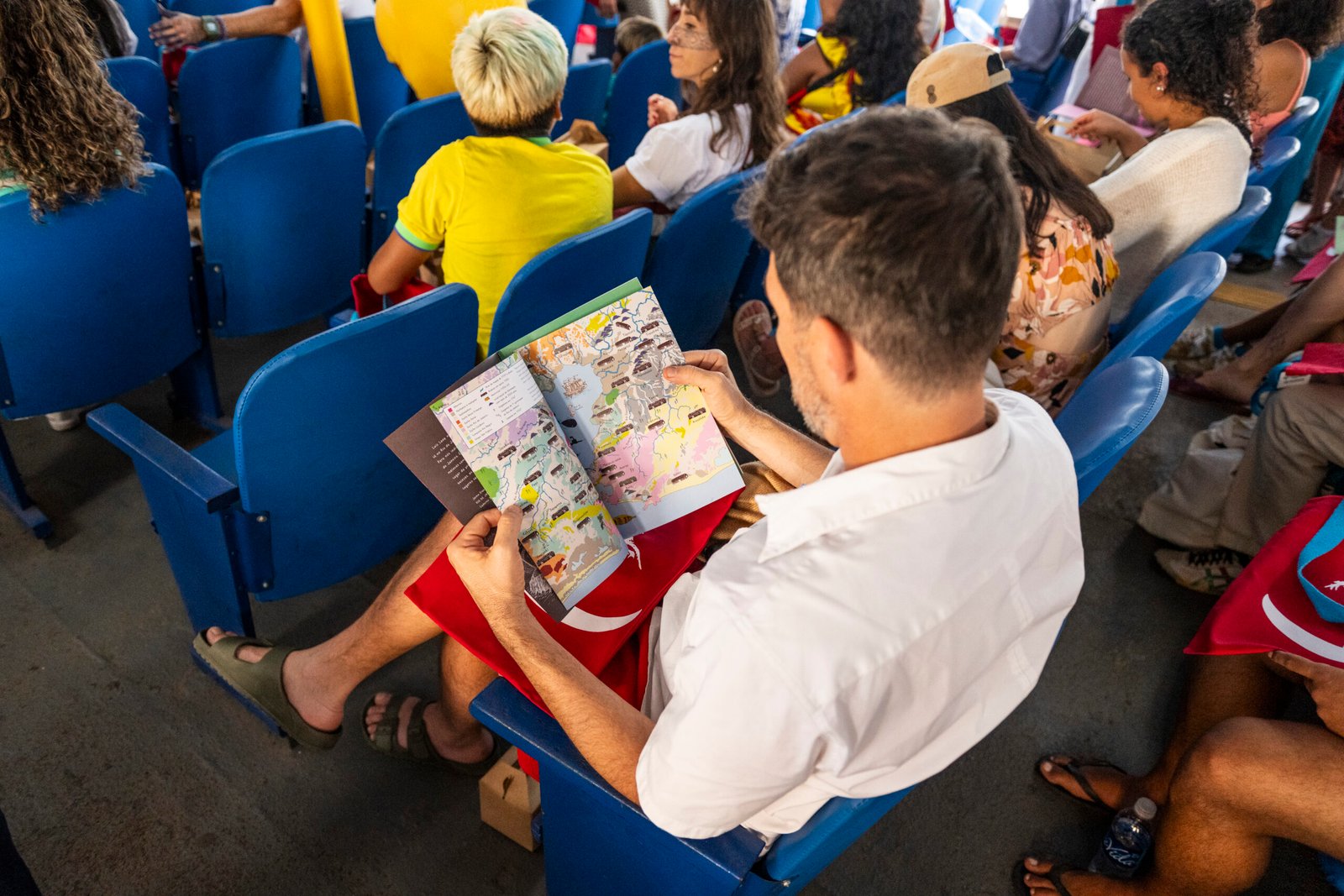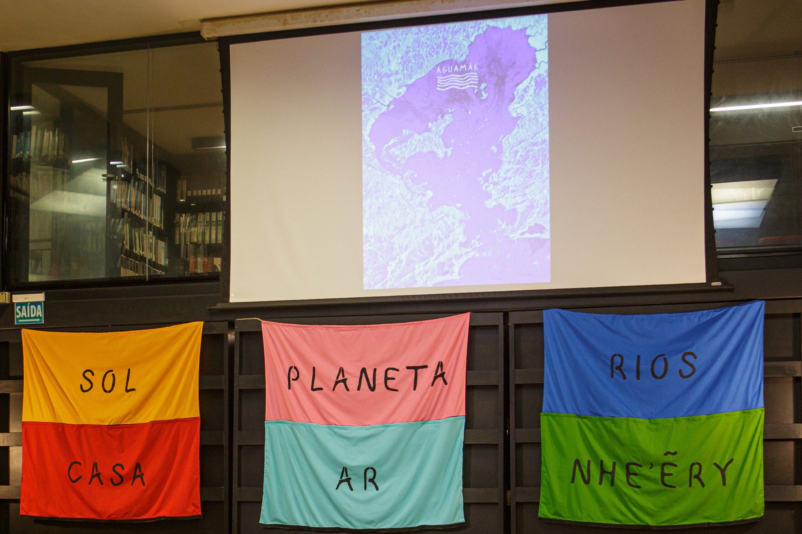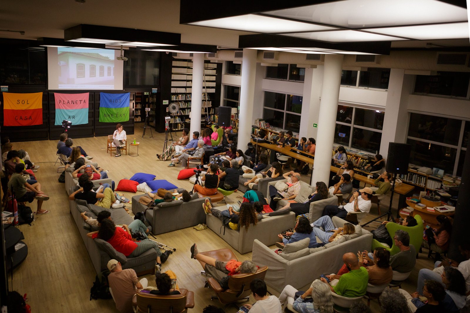 Engineer and geologist Nuria Fernandezspoke about facoidal gneiss, “the most Carioca of rocks,” which places us, through the stones of Guanabara Bay, in dialogue with the deep layers of this territory’s origins. Carlos Papá, coordinator of the Guarani Living School, shared part of his profound research that connects language, territory, and protection: “Guanabara has another translation in Guarani, Kua-Gua-Mba-Ara, something like ‘embrace every day’.”