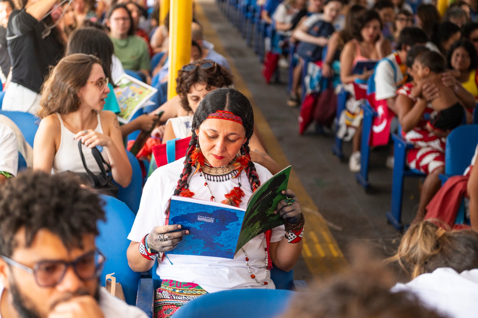 Artist Renata Tupinambá, a member of the collective Guanabara Pyranga: Gathering of Cultures of Guanabara, sang her grandmother’s memories in Tupi and recalled in her words the more than 80 Tupinambá villages that once existed in the bay’s territory.
