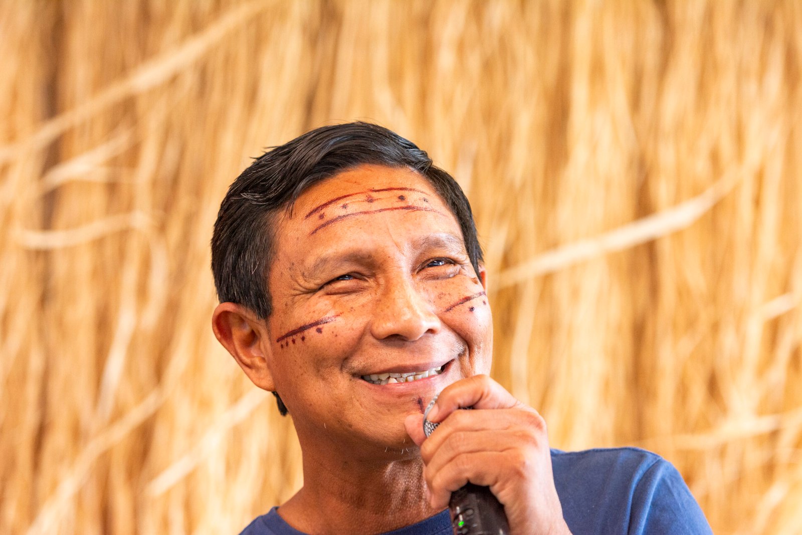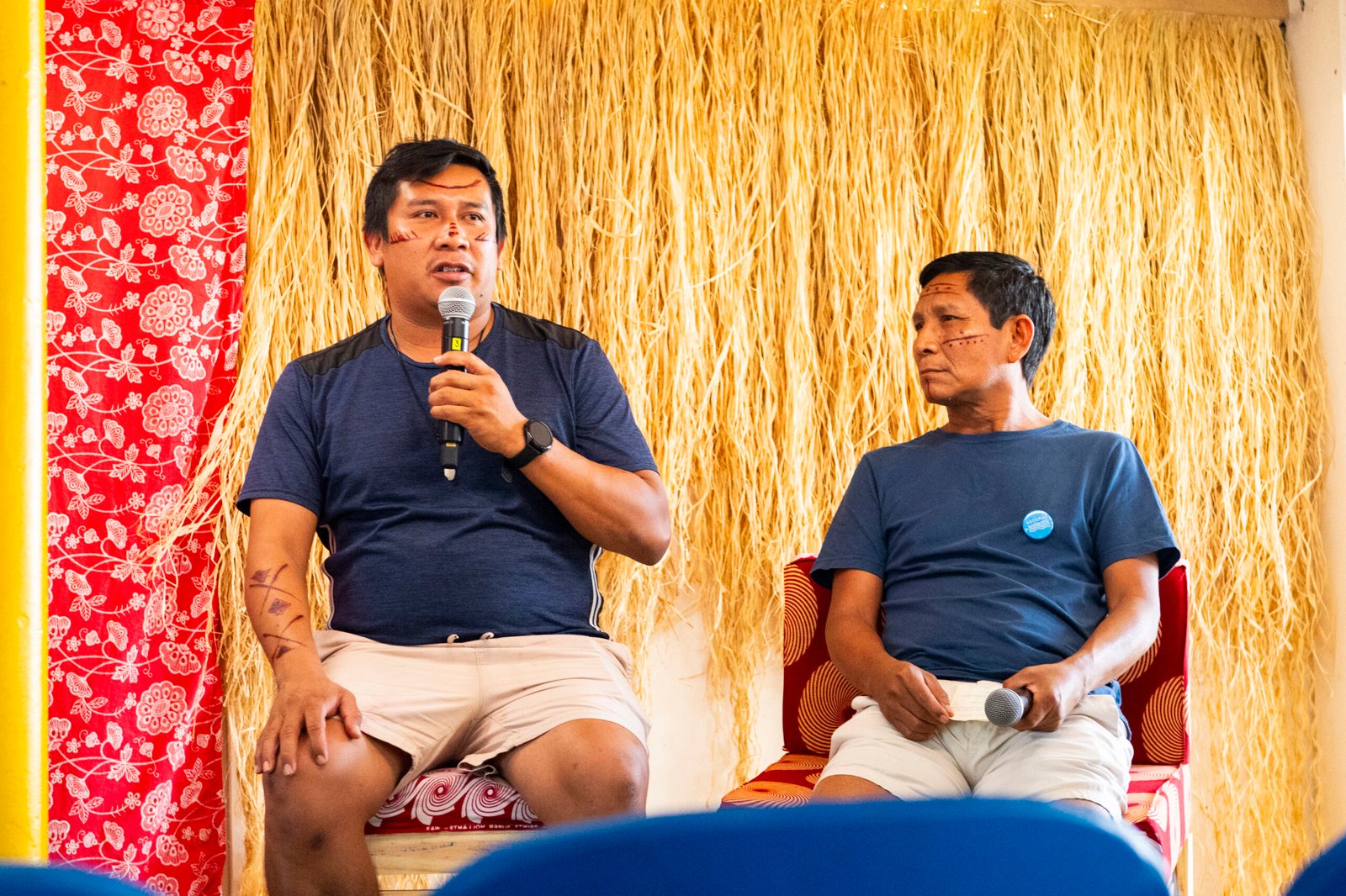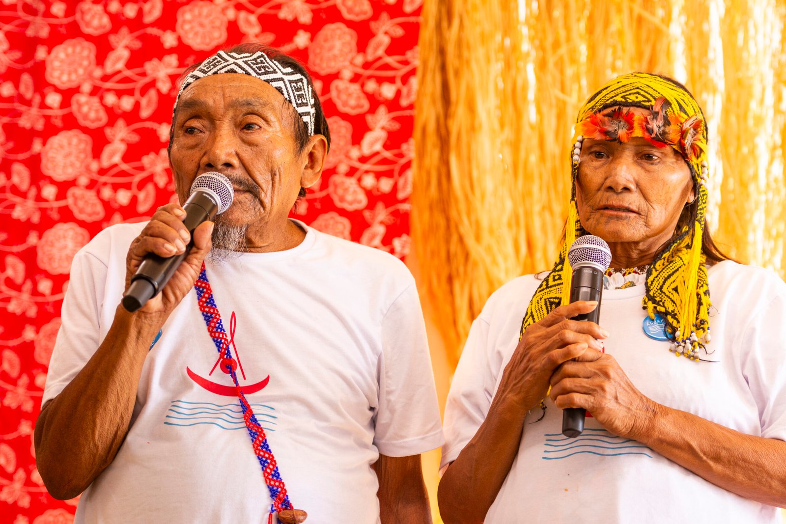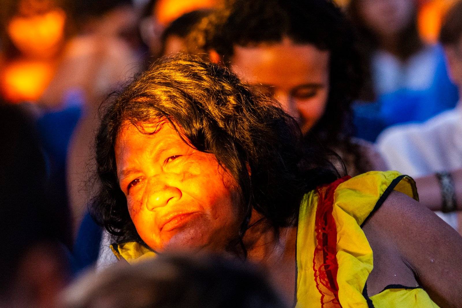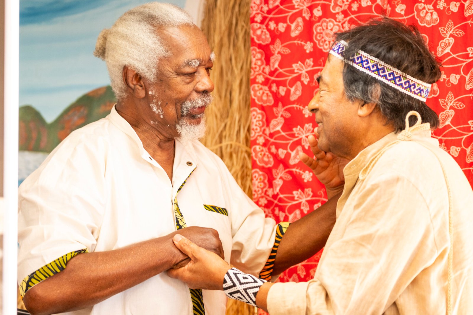 During the journey, the enchantment also unfolded in Indigenous songs from different regions of Brazil, such as those of Huni Kuin pajé Dua Busë and Netë, from the Heart of the Forest Village, the Huni Kuin Living School in the Upper Jordão River region (Acre); and those of artist and pajé Mamei Maxakali alongside Sueli, Isael and Isabelinha Maxakali, from the Forest School Village, the Maxakali Living School, located in the rural area of Teófilo Otoni (Minas Gerais). The japurutu flutes were played by Francisco Fontes Baniwa and Idjahure Kadiwel, representing the Baniwa Living School, located in Assunção do Içana (Amazonas).