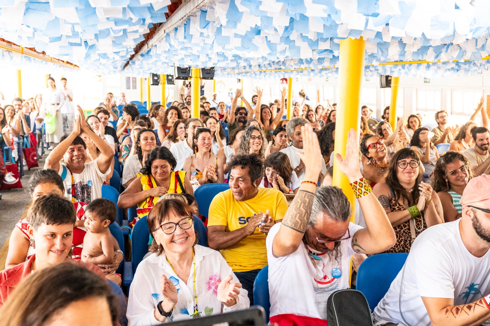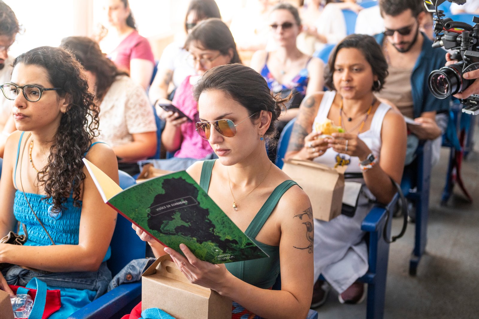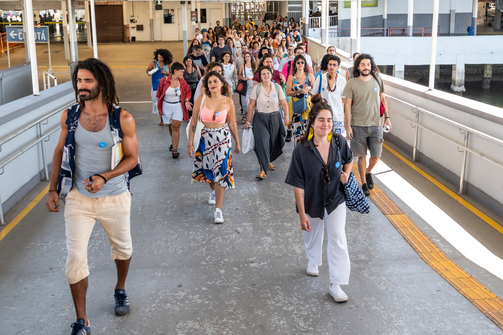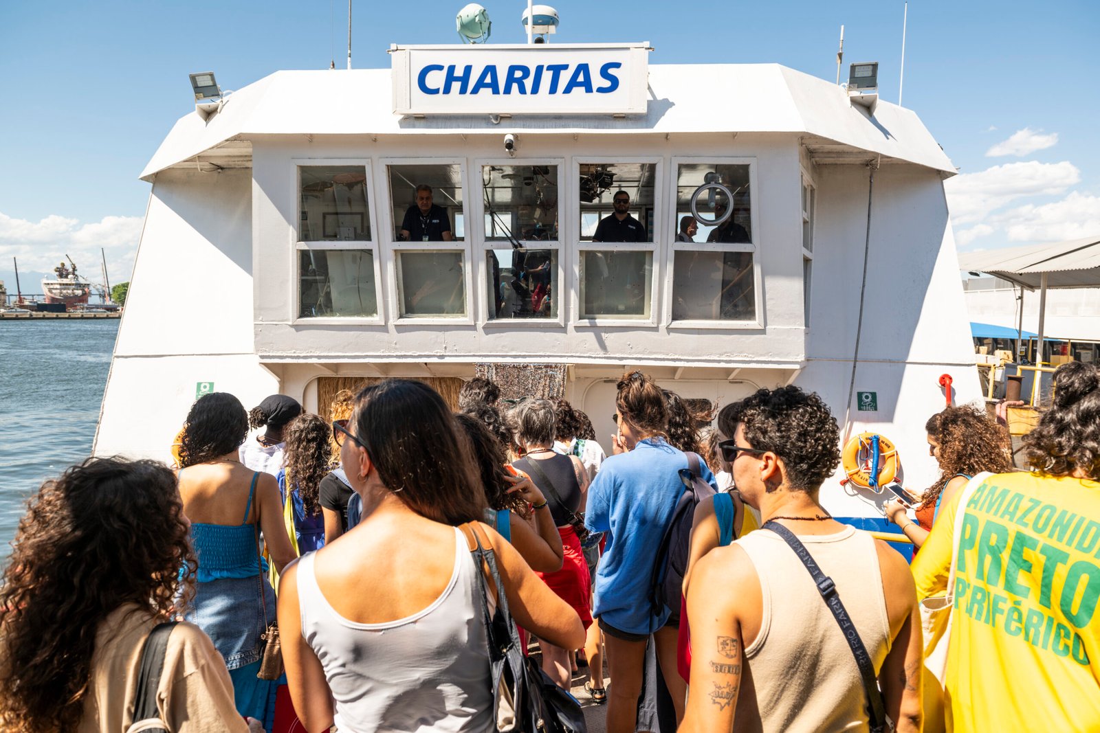 On the afternoon of October 25, Selvagem held the gathering MOTHERWATER, a crossing of Guanabara Bay that brought together around 200 people during four hours of navigation between Rio de Janeiro, Niterói, and Paquetá. Aboard the Charitas ferry, thinkers, artists, and Indigenous leaders shared songs, memories, and reflections on water as a living element in crisis.