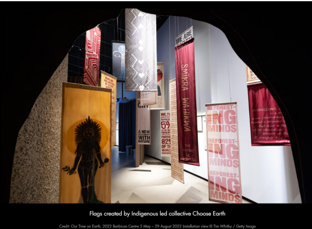 A Flecha foi inicialmente lançada em Londres no Barbican Centre e incorporada à exposição Our Time on Earth que ficou em cartaz entre 5 de maio a 29 de agosto de 2022.