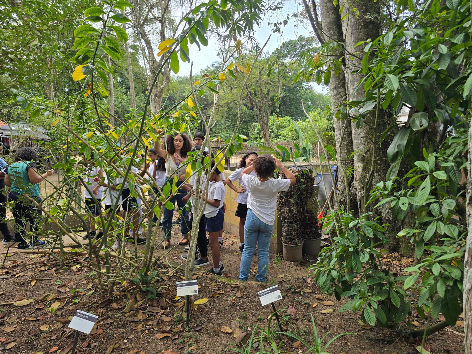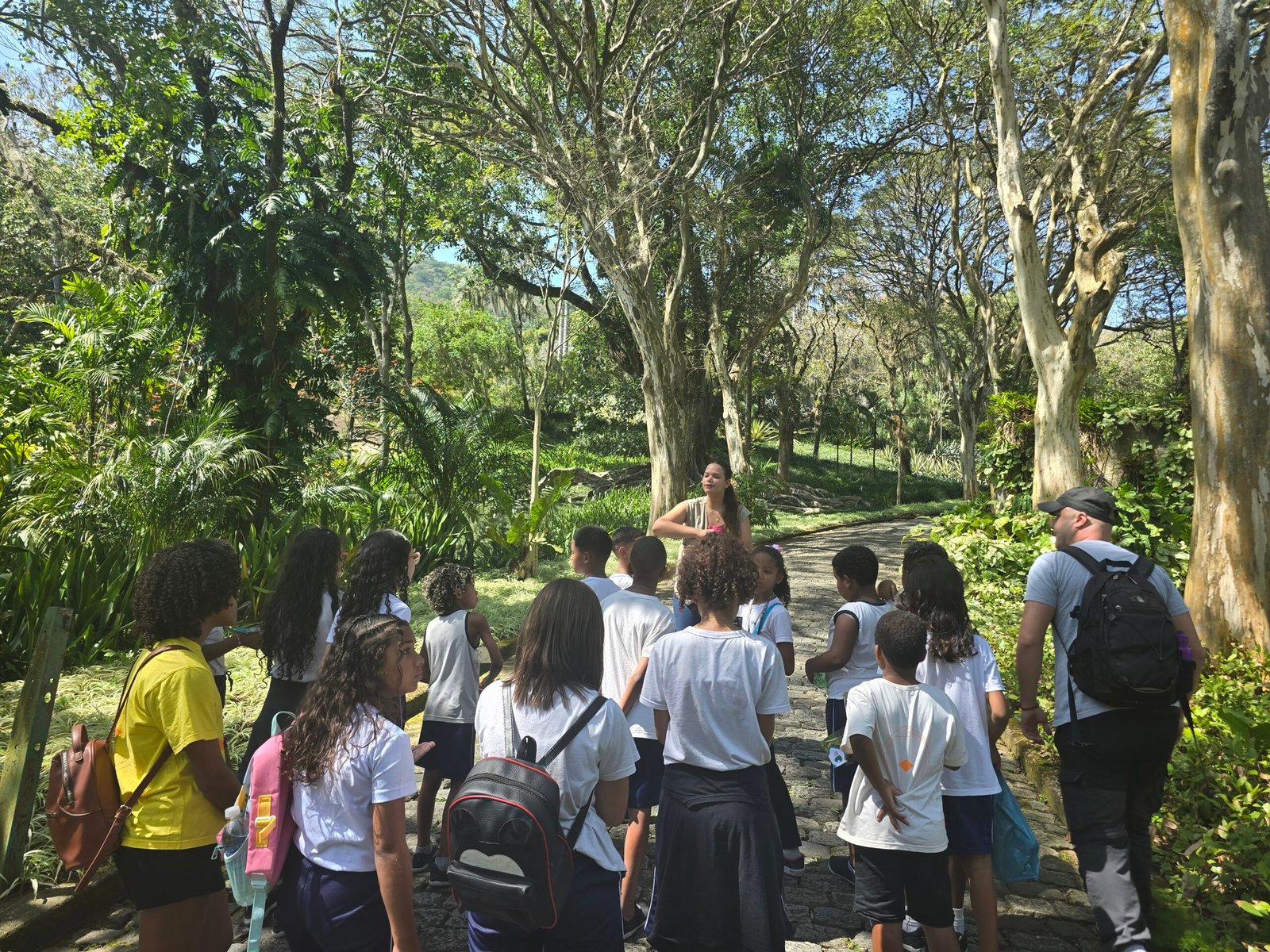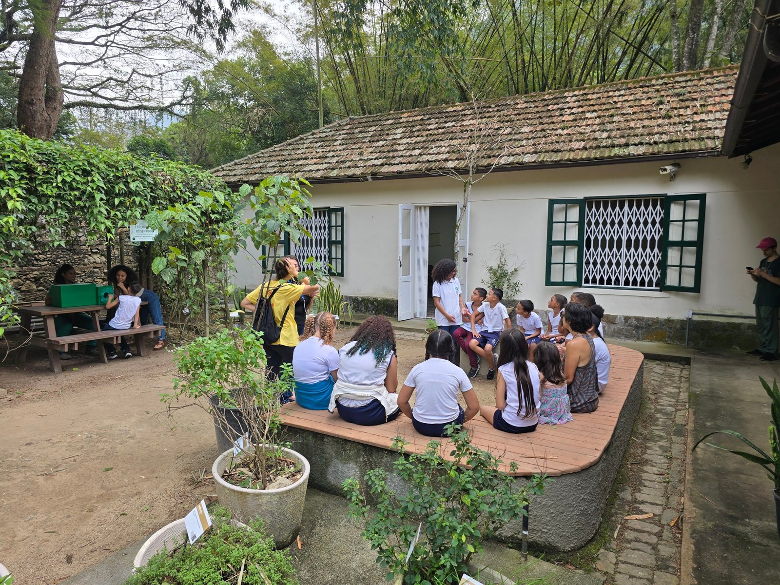 On August 29, 2025, the Selvagem Ways of Knowing group, coordinated by Veronica Pinheiro, in partnership with the Medicinal Plant Garden of the Botanical Garden of Rio de Janeiro, visited the Botanical Garden with a group of children aged 9 to 10, enrolled in the 4th grade of the Professor Escragnolle Dória Municipal School, taught by Janaína Chaves. The tour was aligned with the group's study of photosynthesis and plant life. During the visit, the children had sensory experiences related to science and nature, played, stimulating emotional memories, knowledge about medicinal plants, and the construction of new positive experiences.