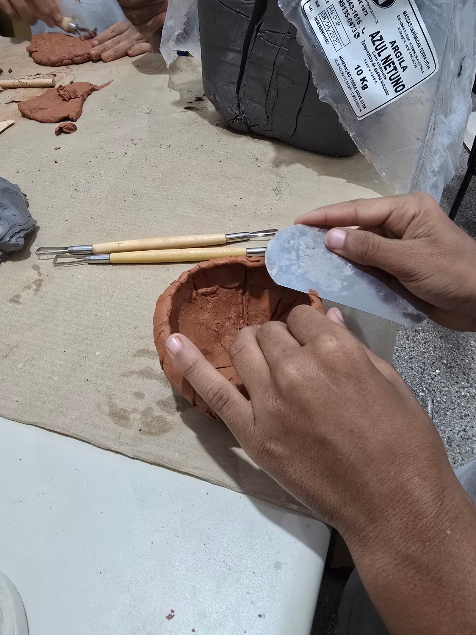 “My grandmother, the keeper of clays, we come to collect clay for our work.” These are the words spoken by the Tukano women when they gather clay. In this workshop, oriented by the ceramists Cacau Porto and Bia Jabor, there were exchanges of knowledge and practices concerning the sacred and artistic relationship with clay. It was a moment to create possibilities of intimacy with the earth. Rethinking our relationship with other beings is one approach to reducing waste in educational and artistic processes, while also broadening the opportunities for engaging with life.