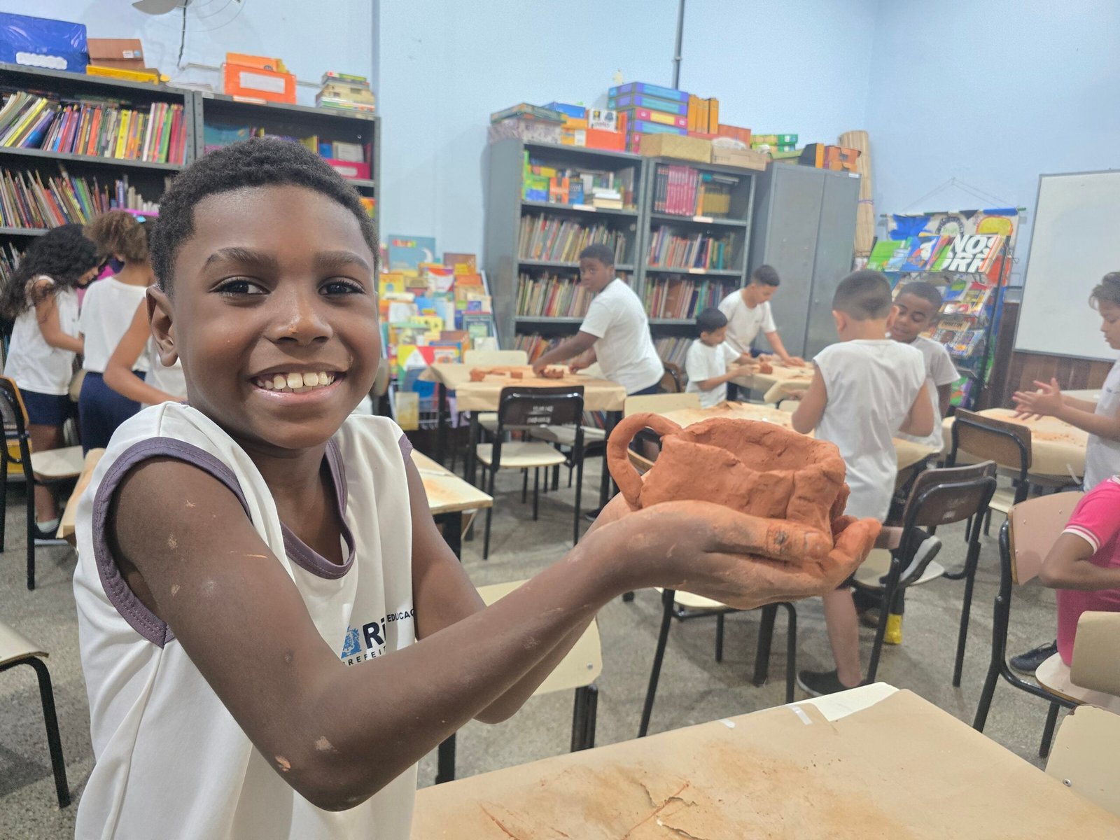Workshop held by Veronica Pinheiro with children from the Escragnolle Dória School, which arose from a partnership between Selvagem and the organisation Agir pour le Vivant. Designed as a moment of sensory experimentation and connection with the living matter of the earth, the activity provided children with a space for creative expression, listening and presence. Through direct contact with clay, participants were able to explore shapes, textures and feelings, awakening their interest in manual work and care for the natural world.
