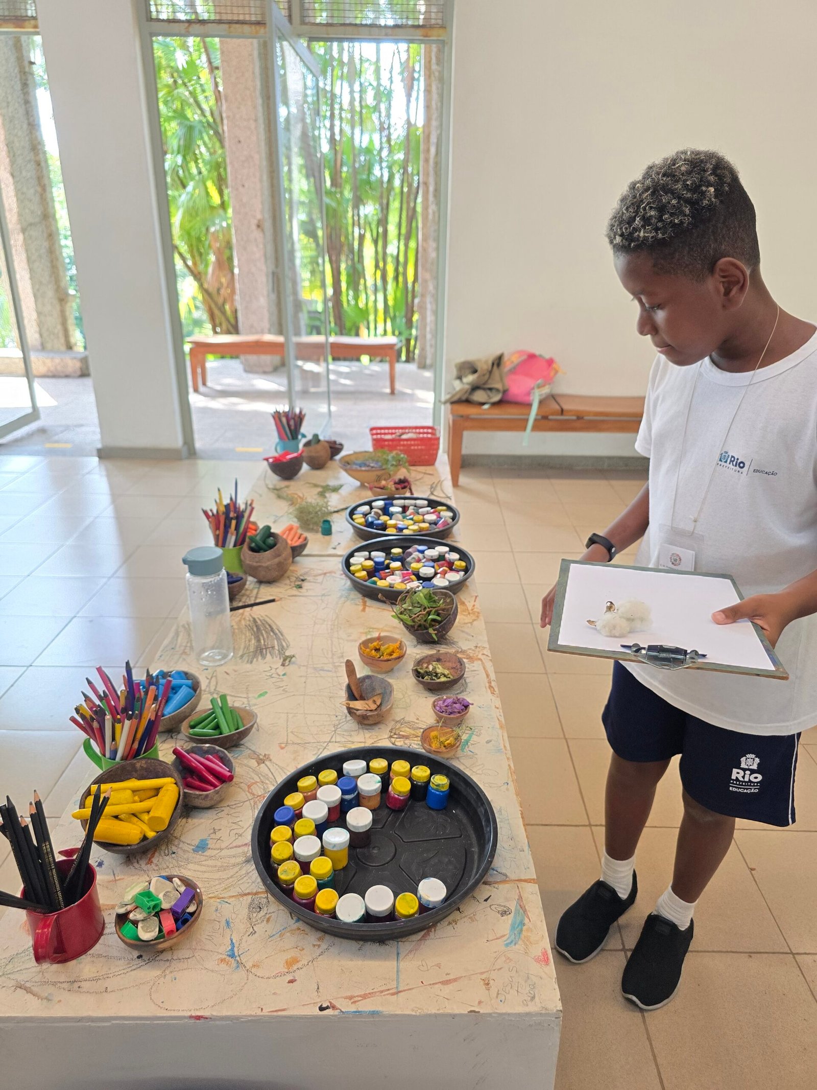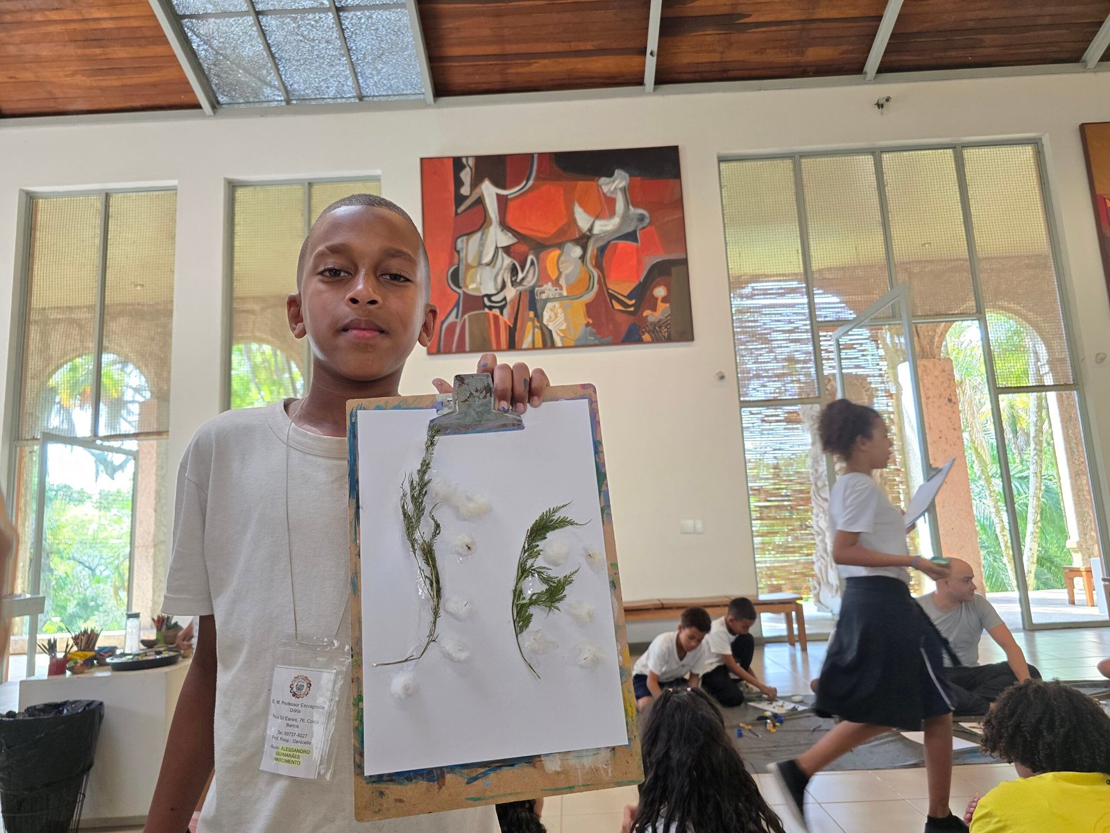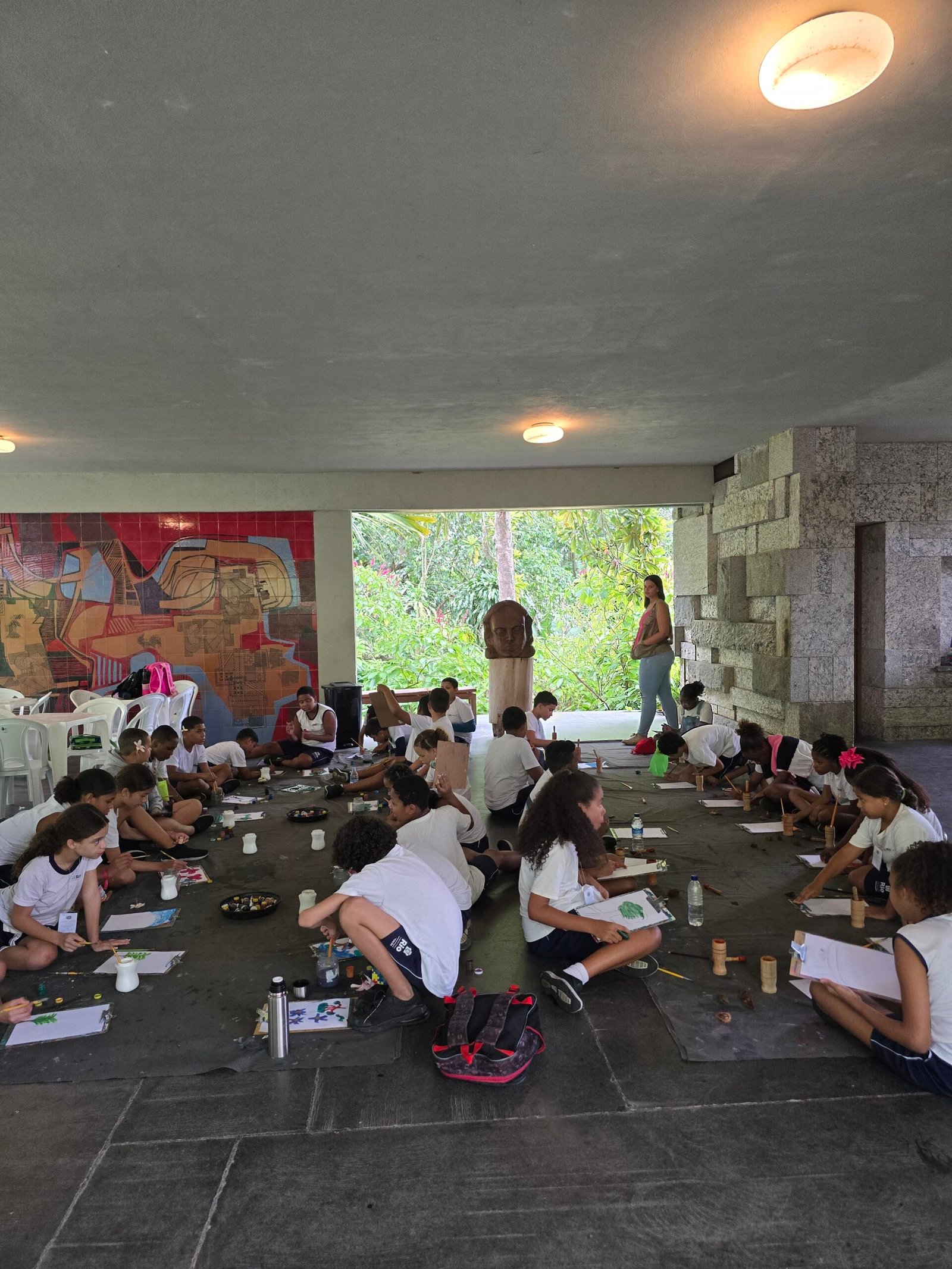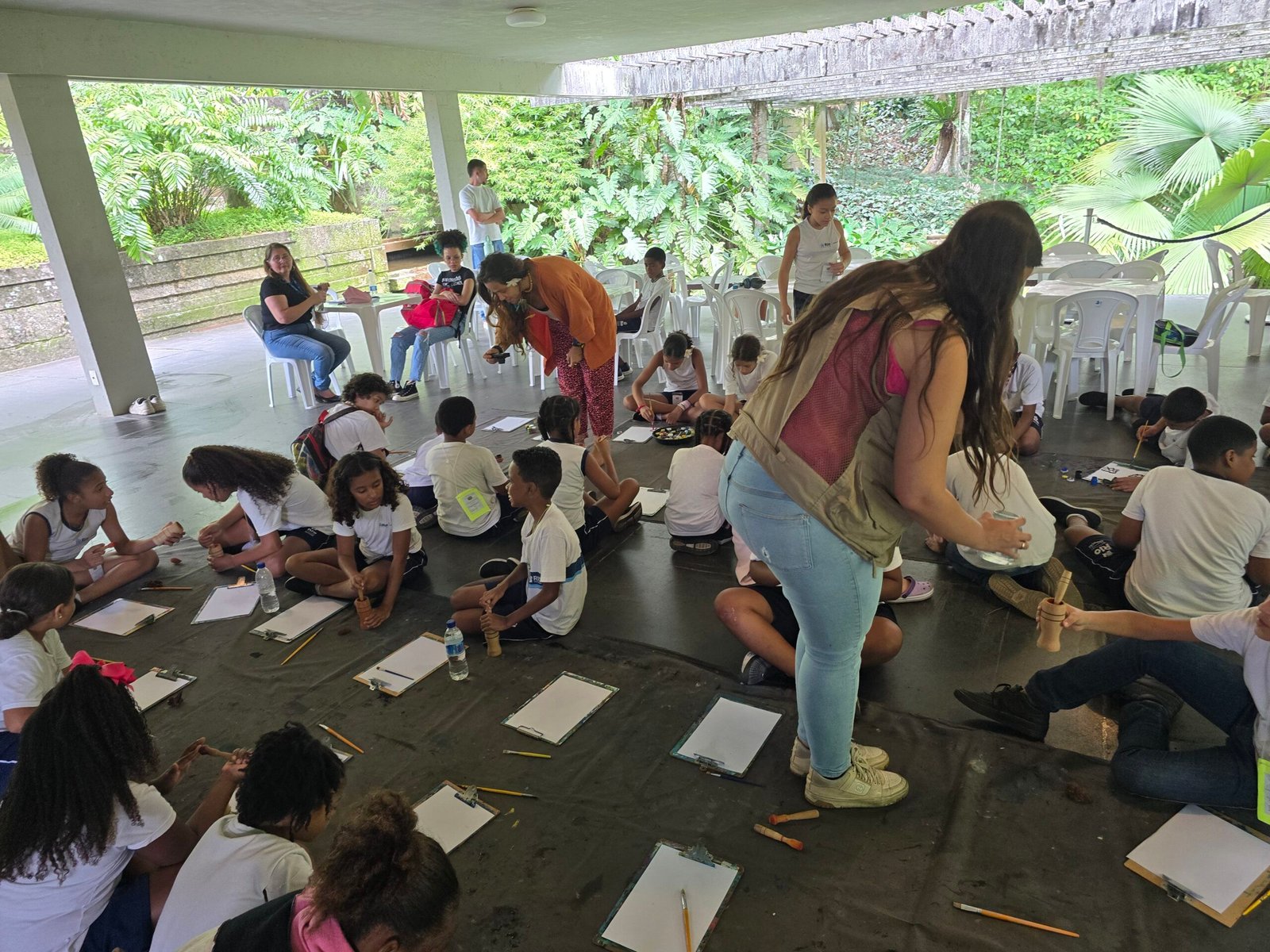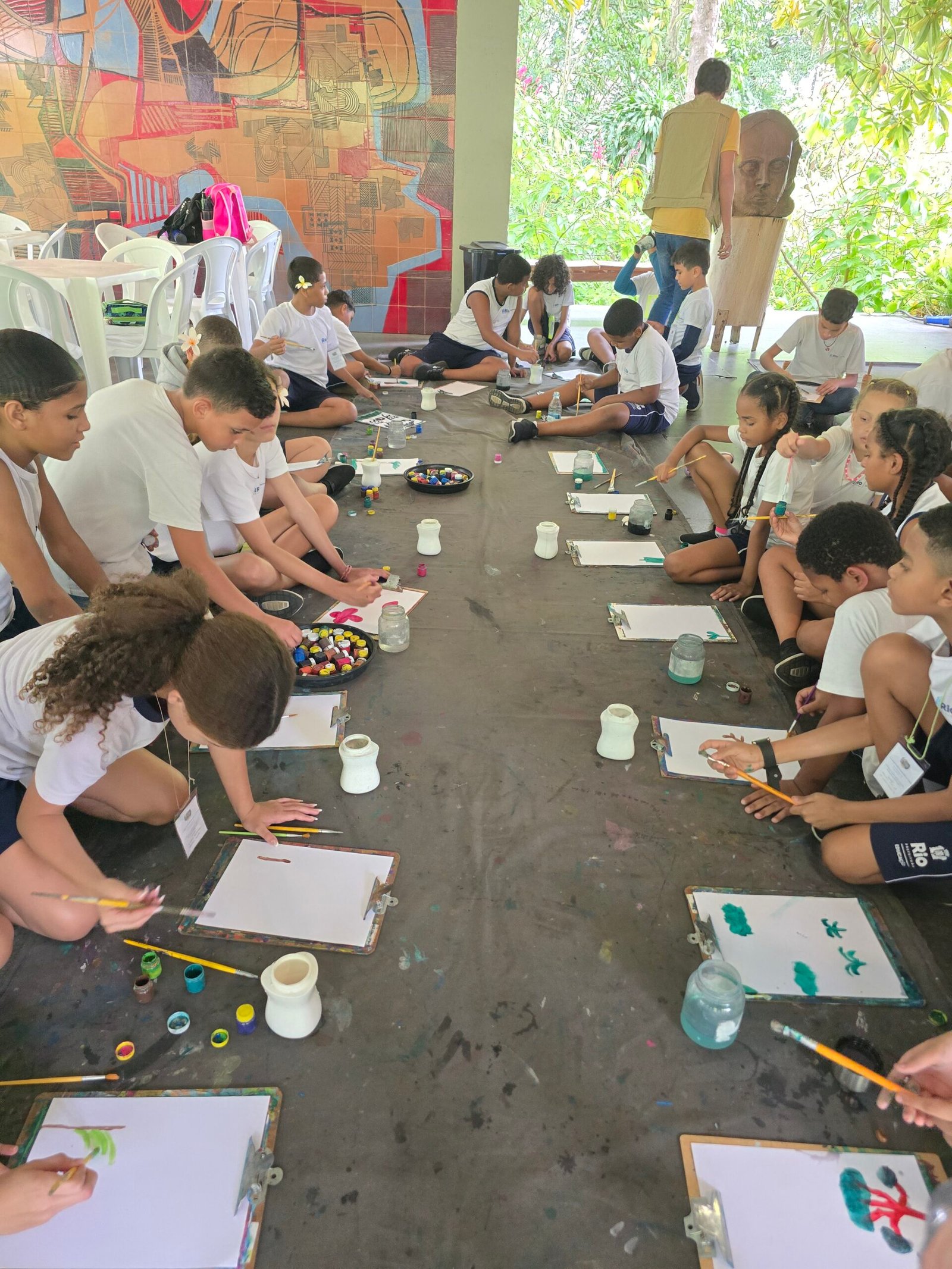 On 27 November, fifth-year students from Escragnolle Dória Municipal School went on an educational field trip to Sítio Burle Marx, in an activity focused on artistic, sensory and environmental awareness. The children participated in a workshop on preparing natural paints from annatto, the processed seeds from the achiote tree, followed by an outdoor painting exercise, connecting creation and nature. The visit also included a guided tour by the site's educators to the gardens, where they could observe different plant and animal species, and to the art collection, expanding the group's repertoire of cultural references. The tour provided an immersion in the landscape, stimulating perceptions, connections and listening to the environment. The activity was especially significant because it carefully and warmly integrated children with autism, ensuring active participation and shared experiences. The meeting reinforced the importance of living learning practices that unite art, territory and inclusion.