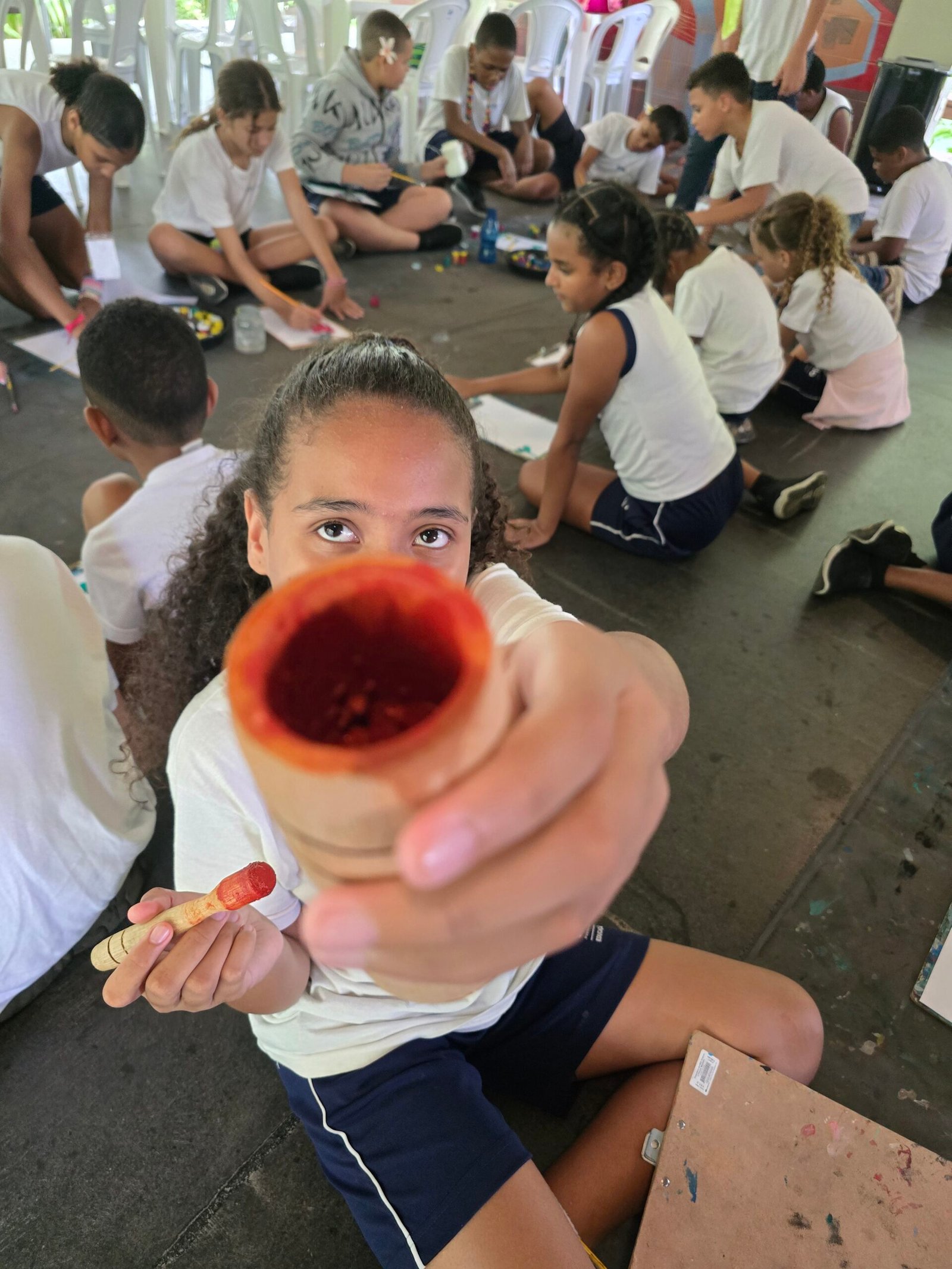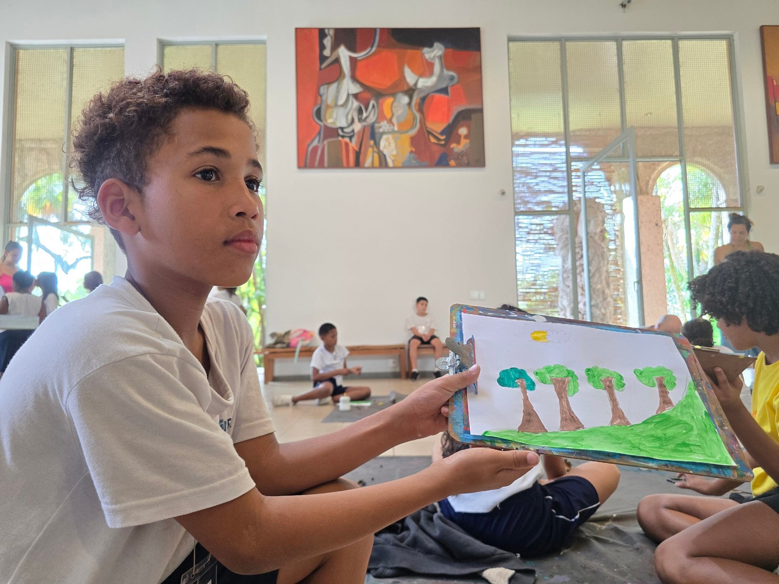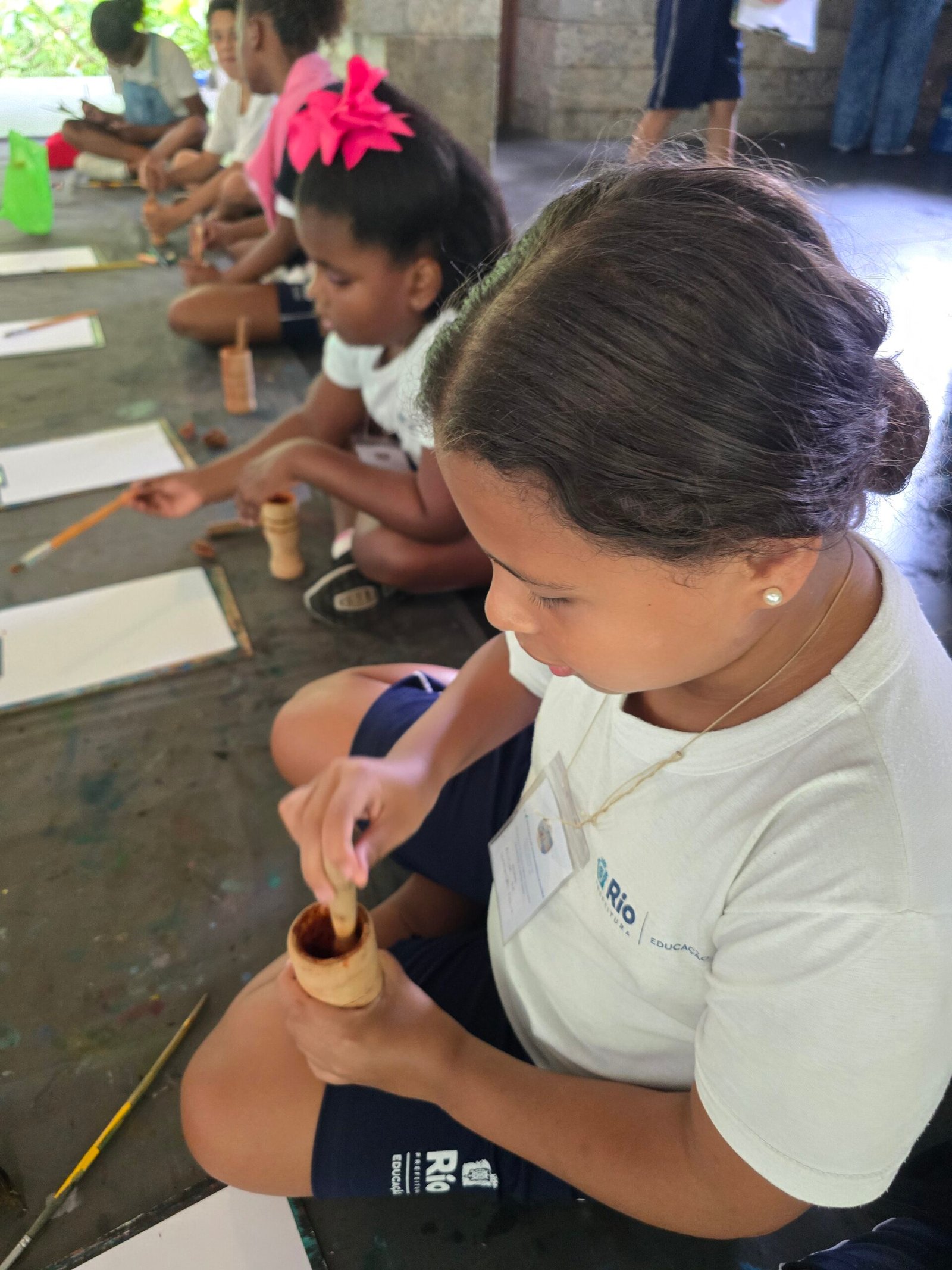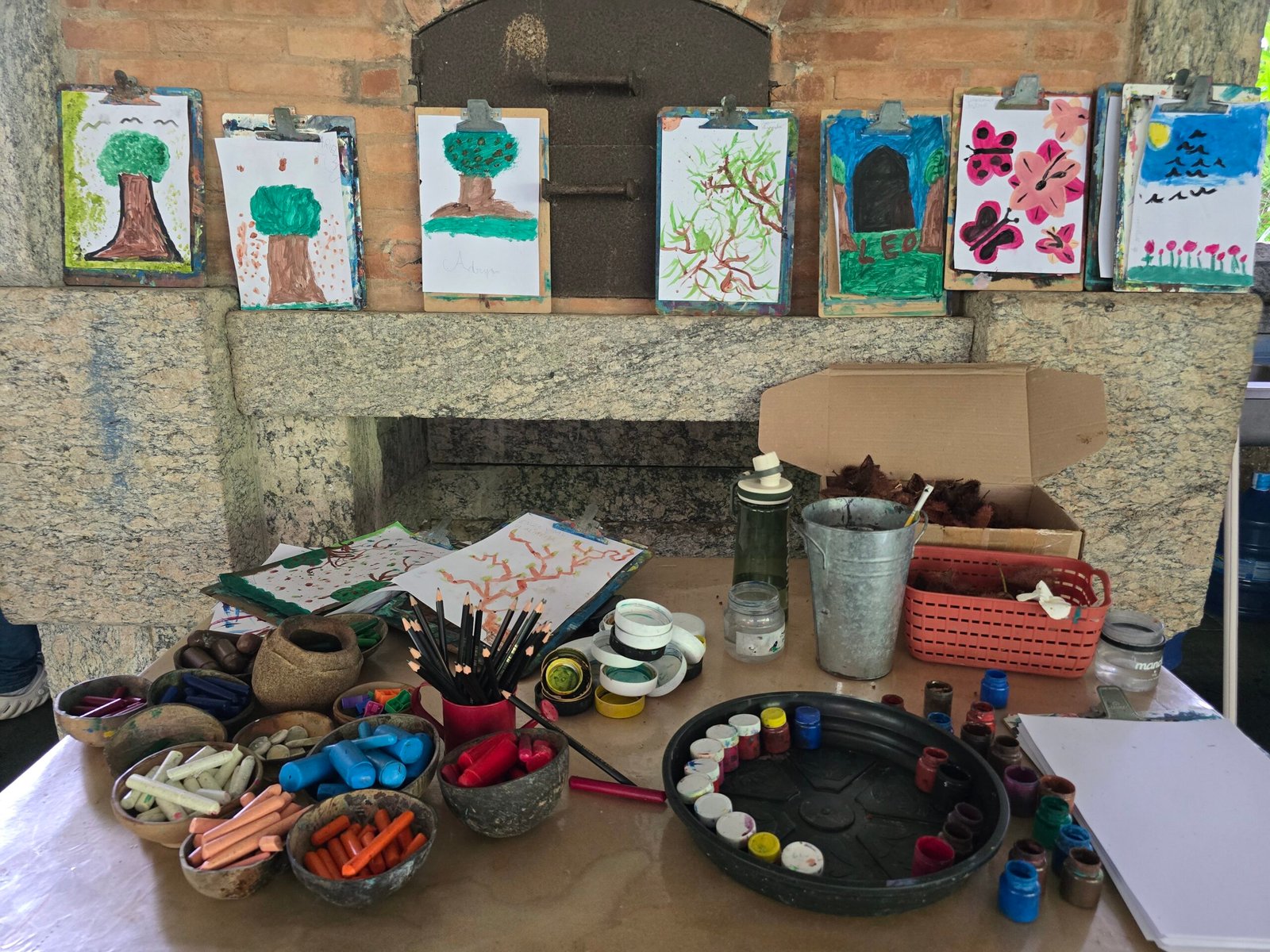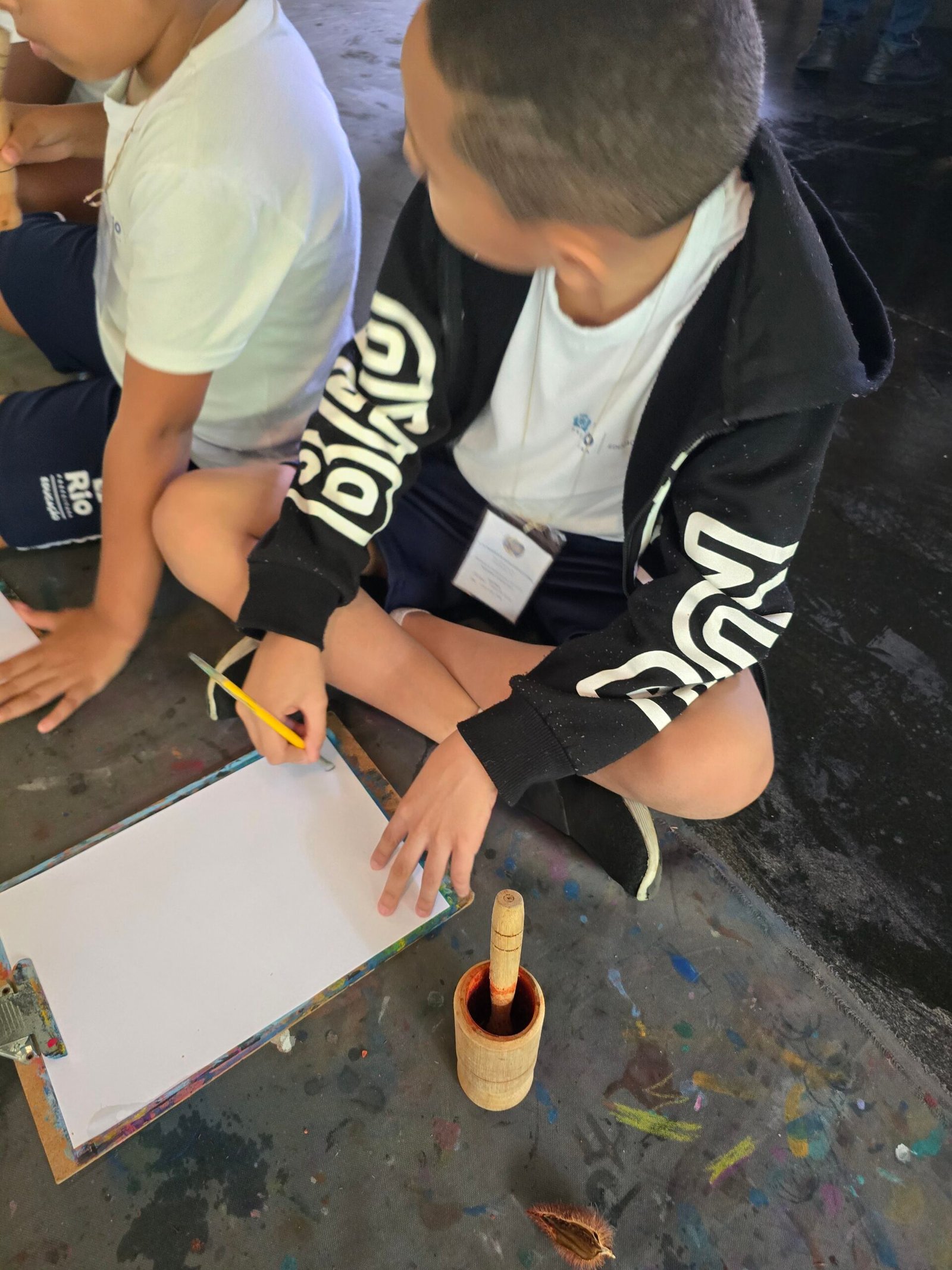 On 27 November, fifth-year students from Escragnolle Dória Municipal School went on an educational field trip to Sítio Burle Marx, in an activity focused on artistic, sensory and environmental awareness. The children participated in a workshop on preparing natural paints from annatto, the processed seeds from the achiote tree, followed by an outdoor painting exercise, connecting creation and nature. The visit also included a guided tour by the site's educators to the gardens, where they could observe different plant and animal species, and to the art collection, expanding the group's repertoire of cultural references. The tour provided an immersion in the landscape, stimulating perceptions, connections and listening to the environment. The activity was especially significant because it carefully and warmly integrated children with autism, ensuring active participation and shared experiences. The meeting reinforced the importance of living learning practices that unite art, territory and inclusion.
