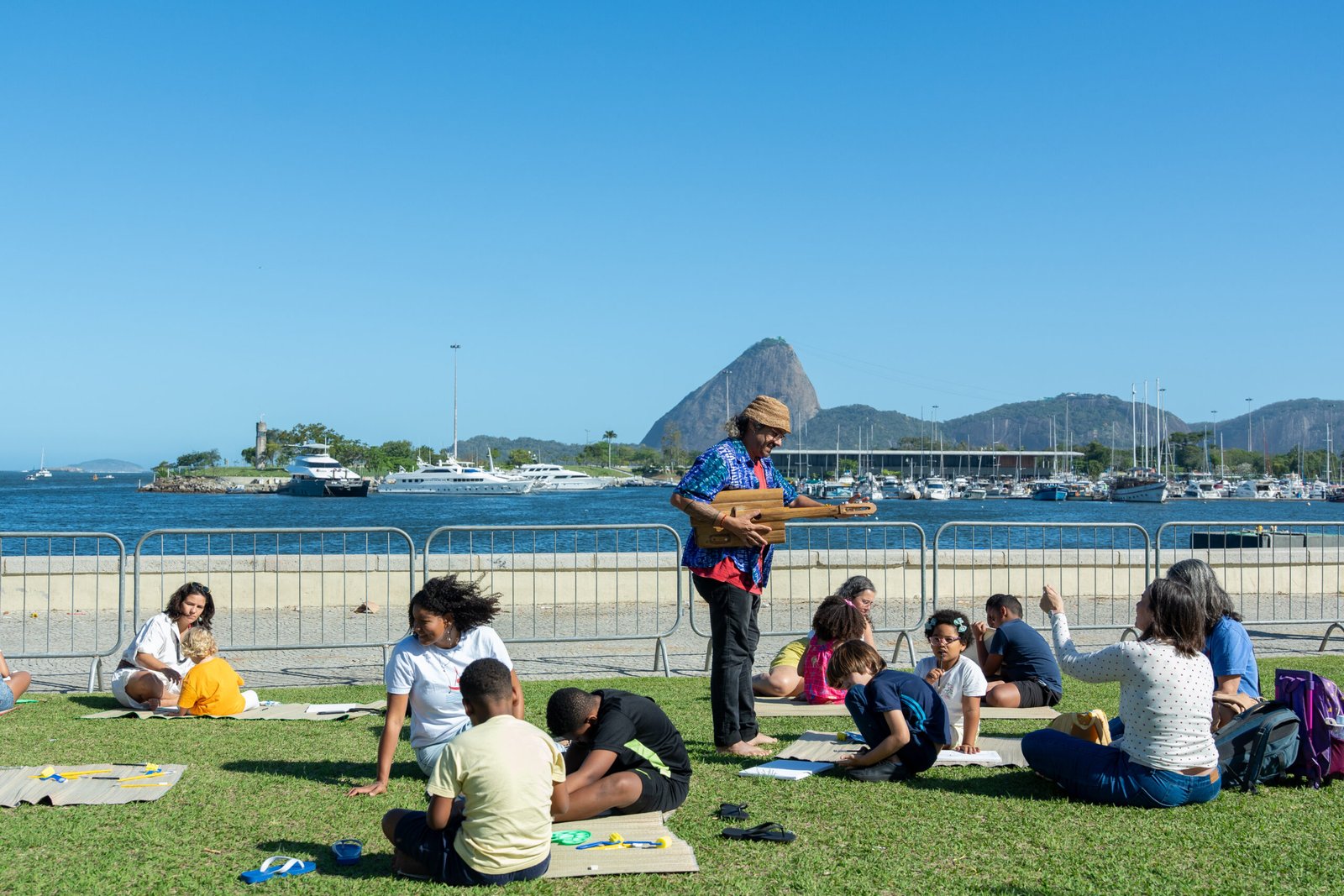 Visit to the Museum of Tomorrow, in Rio de Janeiro, as part of SEMEIA, "Semana do Meio Ambiente" [Environment Week], with children from Professor Escragnolle Dória Municipal School and their families. Based on the activities proposed in the Selvagem Droplet Notebook, there was a storytelling session led by Veronica Pinheiro about Guarani myths and the original hummingbird, Maino. There was also a workshop on plant- and mineral-based pigments, as well as an introduction to natural watercolours. The children also visited the oceanographic vessel Apa, from the Brazilian Navy.