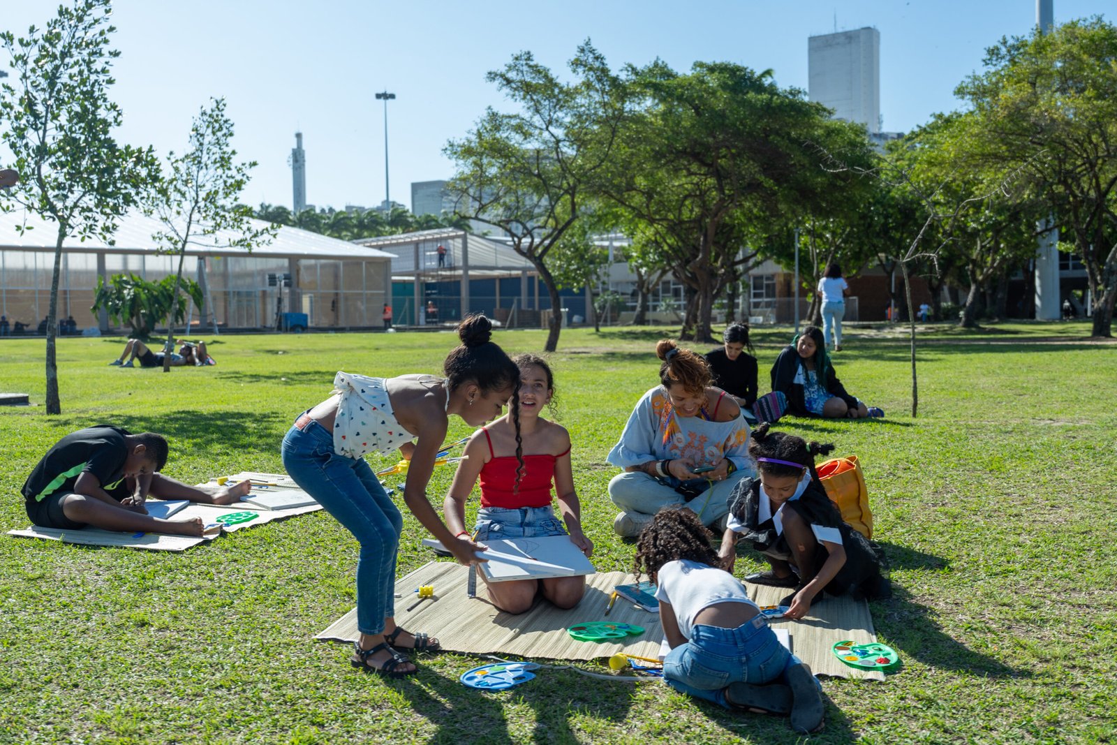 A trip to the Rio de Janeiro Botanical Garden with children from the Professor Escragnólle Doria Municipal School, located in the Complexo da Pedreira favela in Rio de Janeiro. Activities included meditation, a picnic, discussion circles, and theatrical games, as well as a visit to the Mba’é Ka’á exhibition with educators from the Botanical Garden Museum.