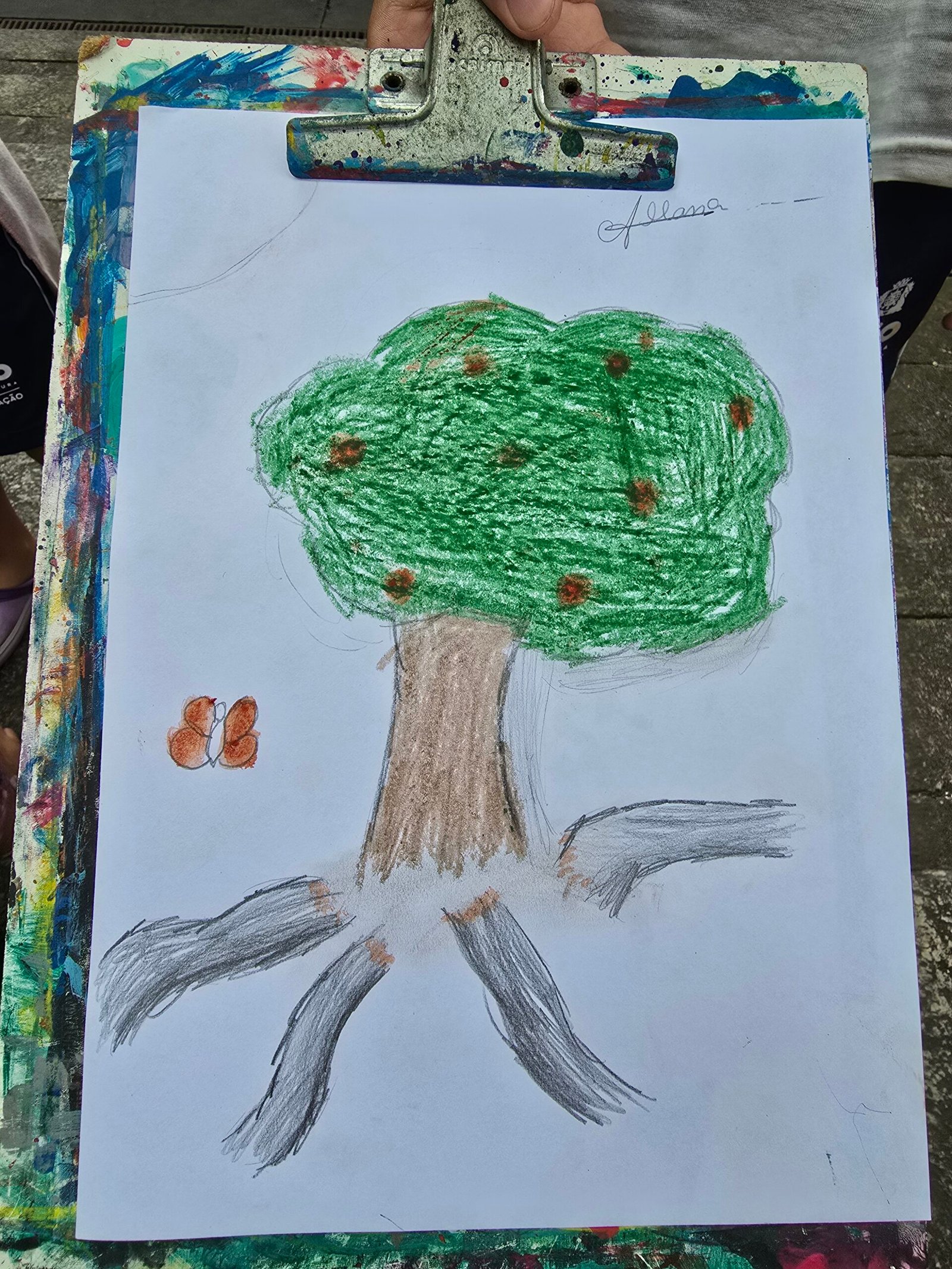 First in-person meeting with children; a circle of conversations, drawings and lots of imagination. A visit to the Jangada School to listen to the children, a morning of exchanges under and about the sun. The activity was attended by the school's classes, teachers and educators.